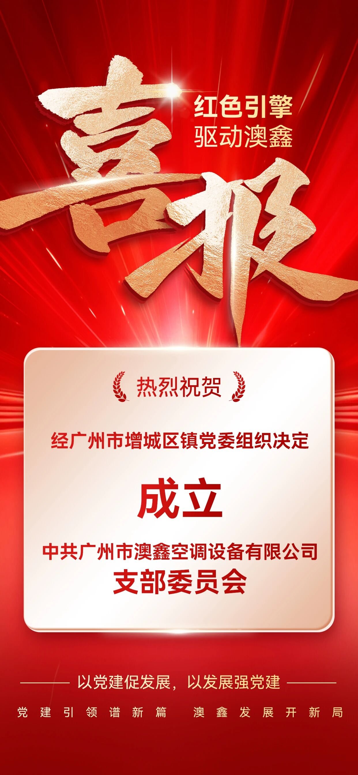 热烈祝贺中共广州市澳鑫空调设备有限公司支部委员会正式成立