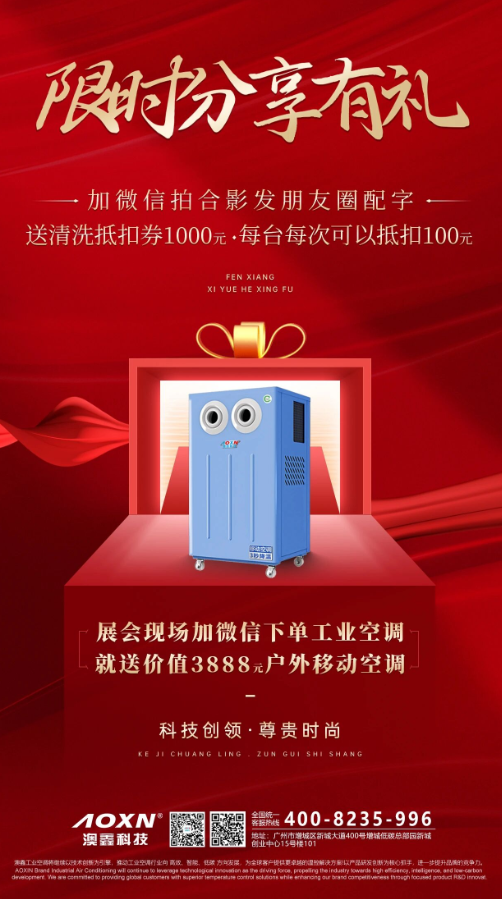 展位 4A13 添加客服微信并当场下单工业空调(以系统下单为准),即送户外移动款 1 台(价值 ¥3,888)。