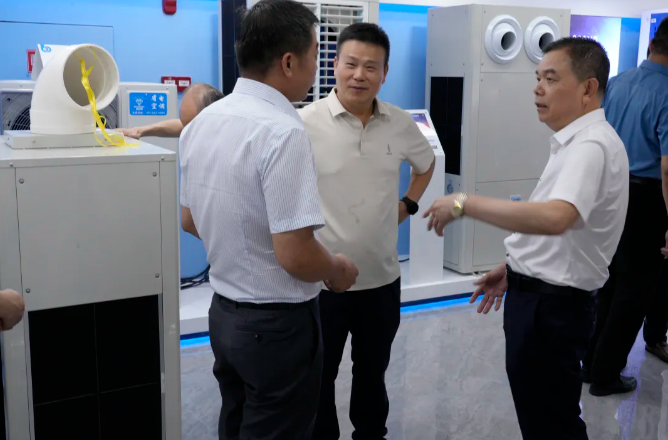 2025年6月10日,广州市增城区政协副主席谭小棠率政协一行领导莅临广州澳鑫科技有限公司调研指导工作。澳鑫科技厂长吴稳成热情接待,并带领政协一行参观了企业展厅、生产车间及工业空调核心产品展示区。